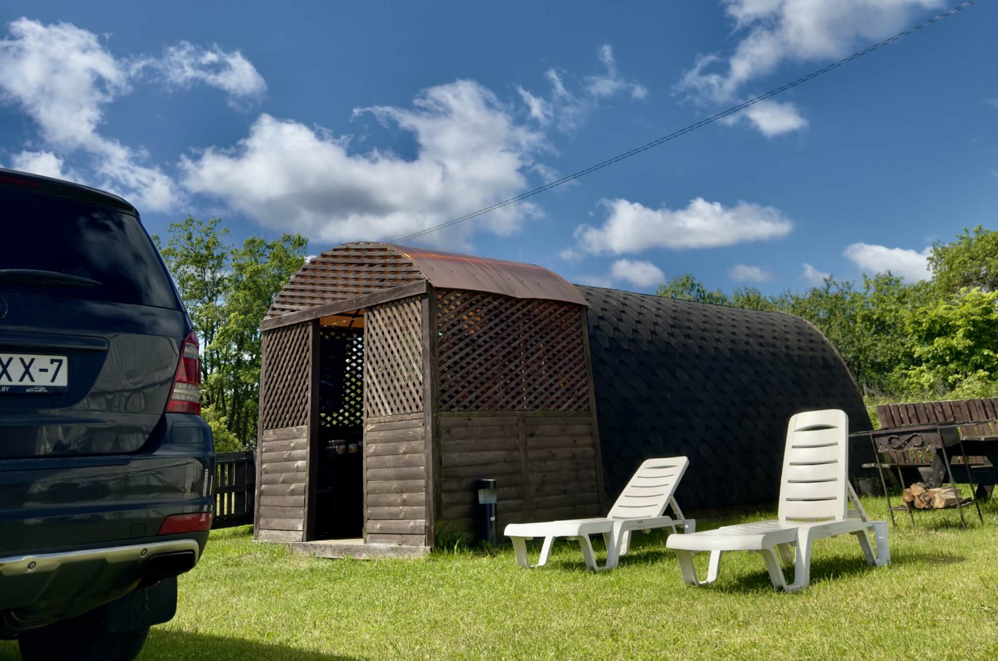 Решетки и шампура. В домиках расположены на мангальной зоне. Для гостей Терема не требуют дополнительной платы и их можно взять у администратора.